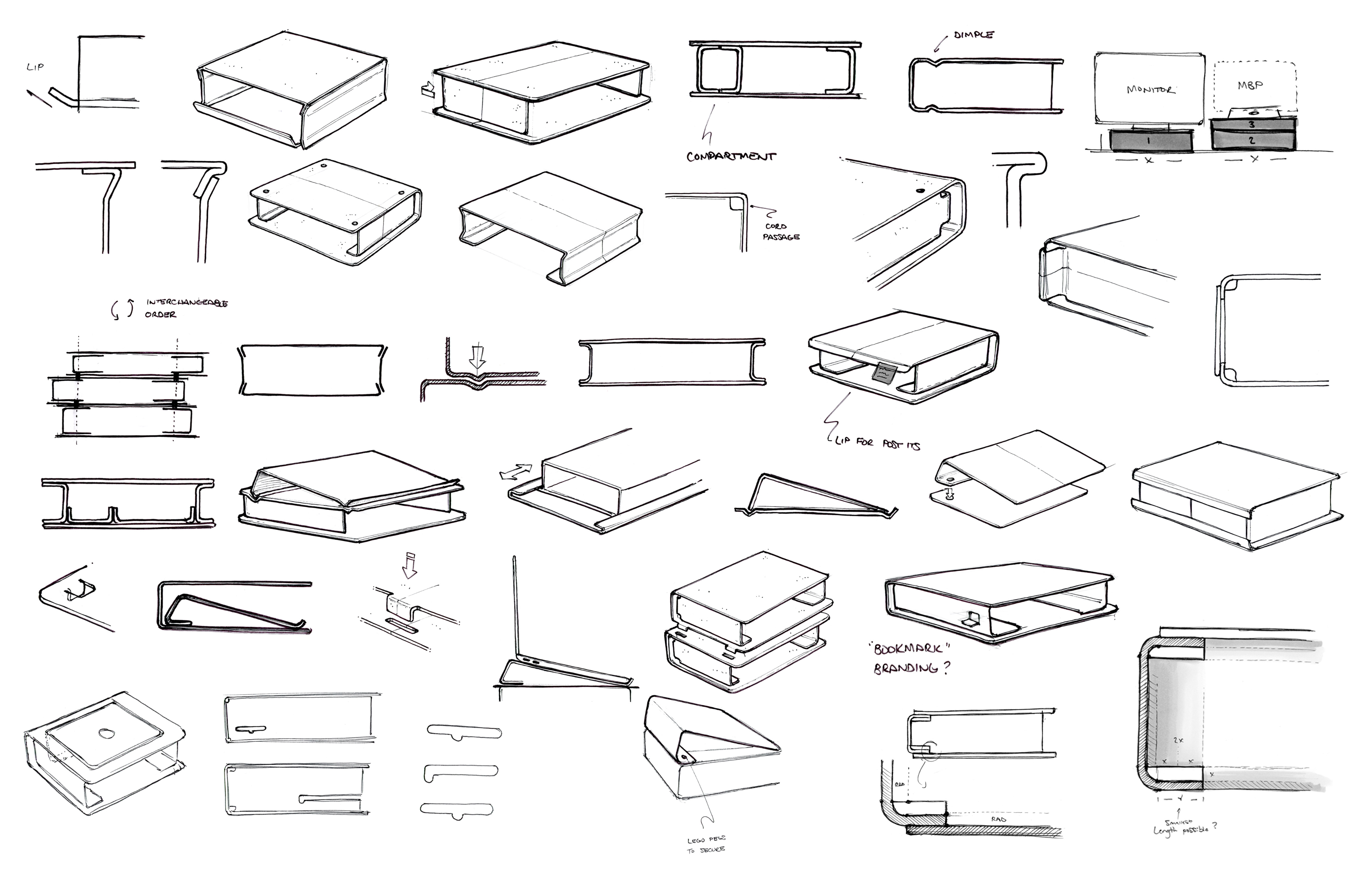 Volumes mimics our common behavior of stacking books to support our laptops and monitors in order to create the ideal working desk. The independent pieces of the system are made to work with users personal preferences, creating a functional addition to their desk working environment.