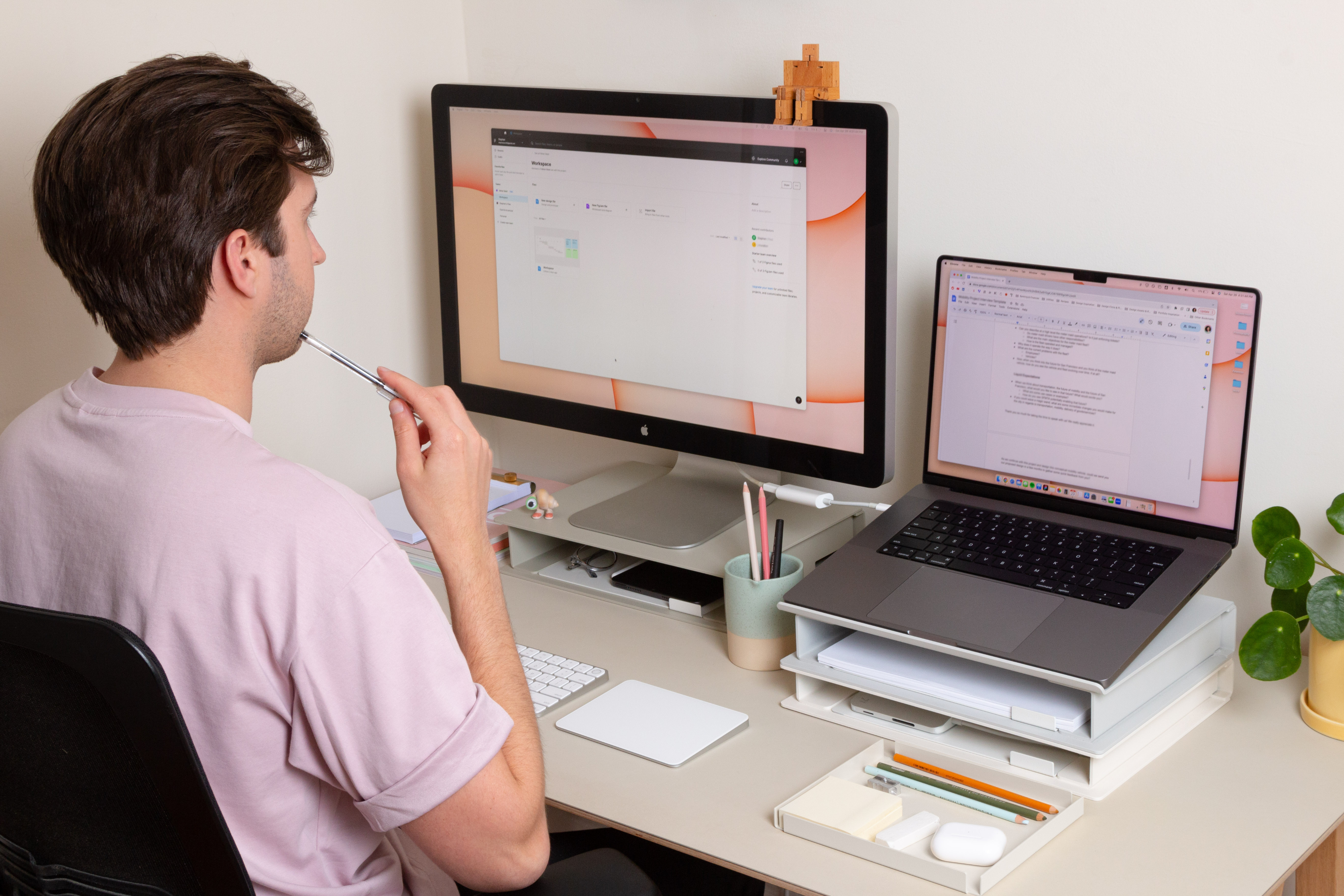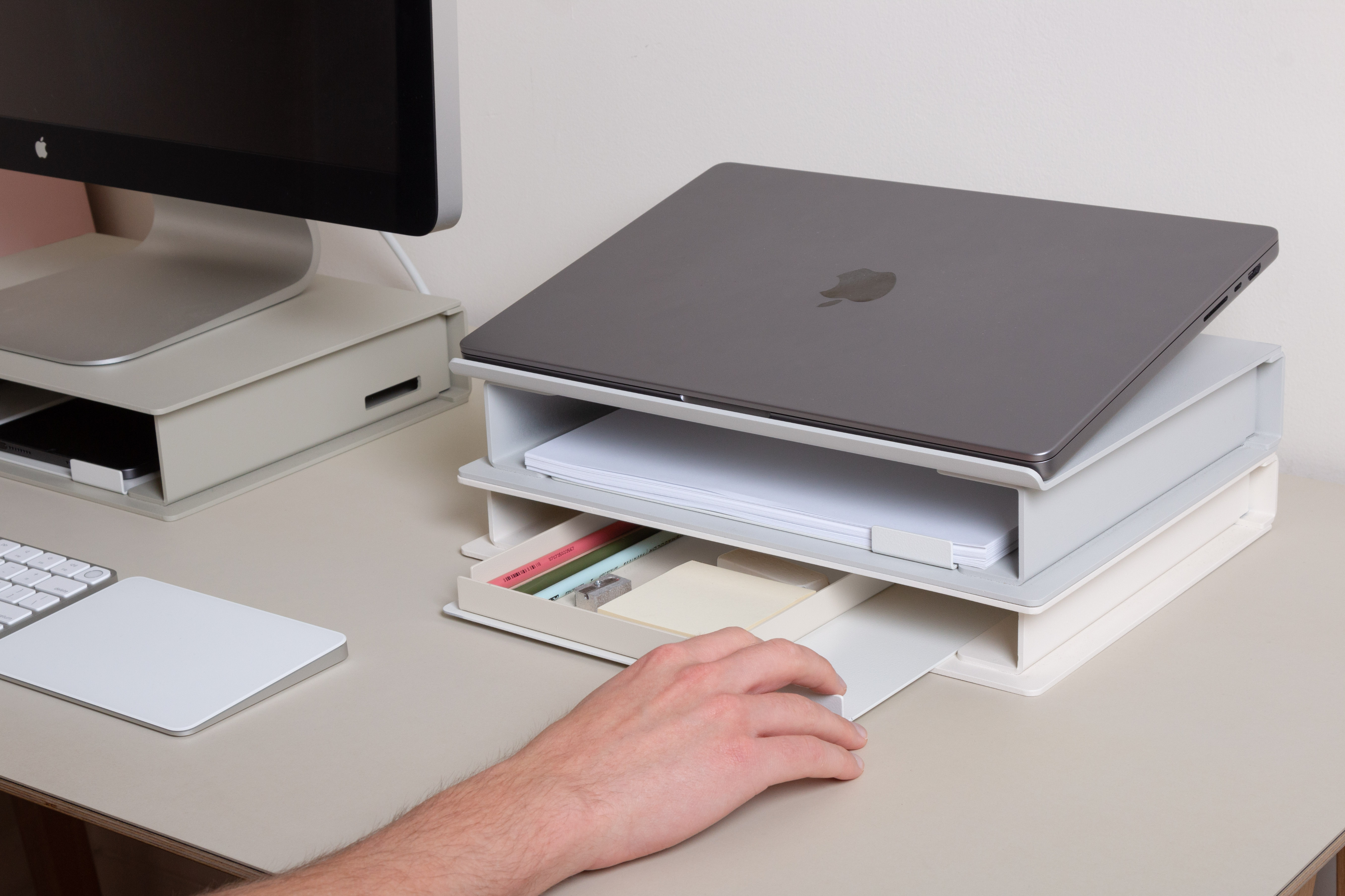 Since the pandemic, our bedrooms and living rooms quickly had to transform and reflect how our space in an office or work environment once felt. Desks and tables at home were now populated with additional monitors, laptops, other devices, post-its, paper, and more coffee ring stains than we imagined.