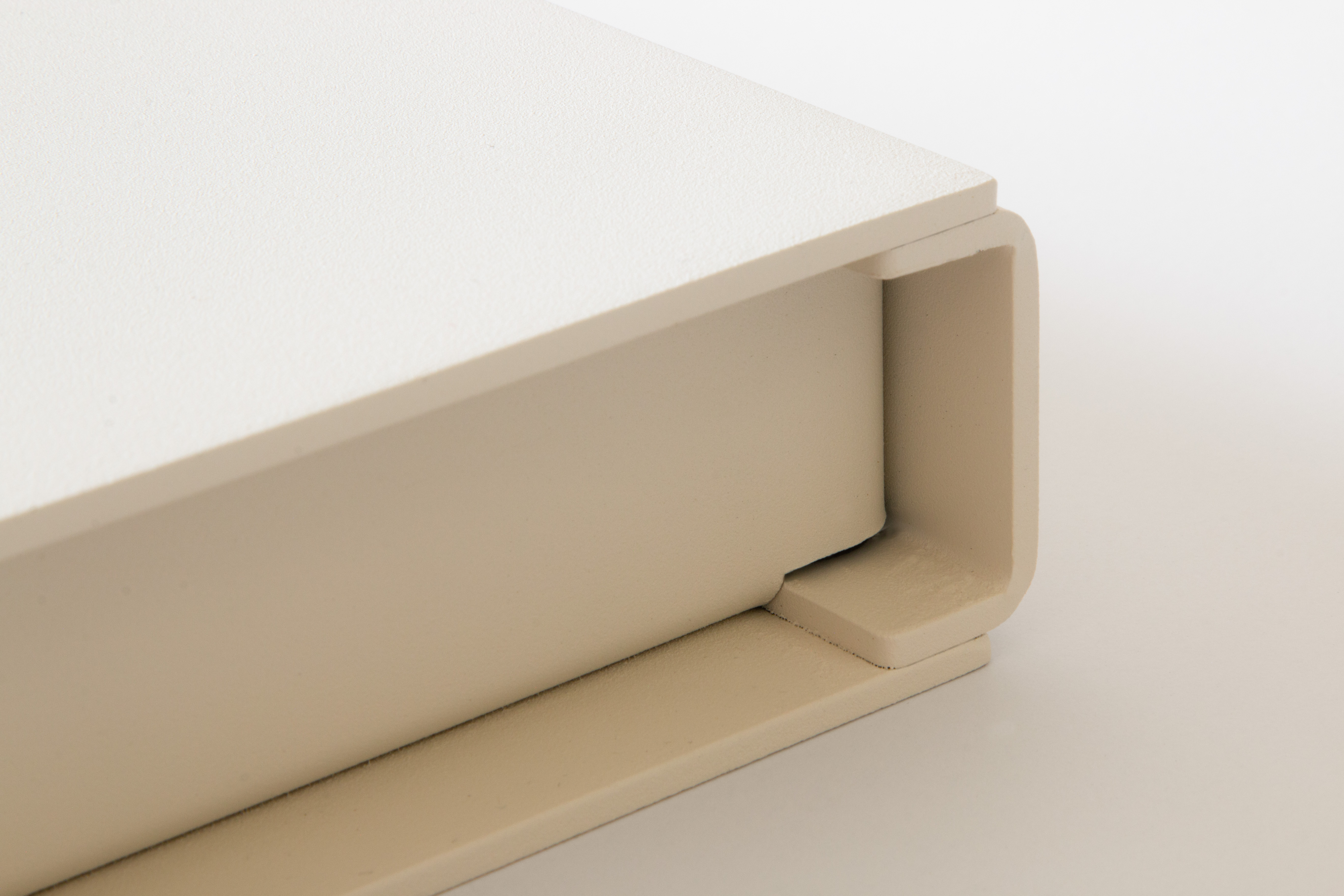The manufacturing process is cheap and cost effective. Laser cut profiles are bent in a CNC press brake and then welded together to achieve the three dimensional volume. A thermoplastic powder coat is then applied as a finish.